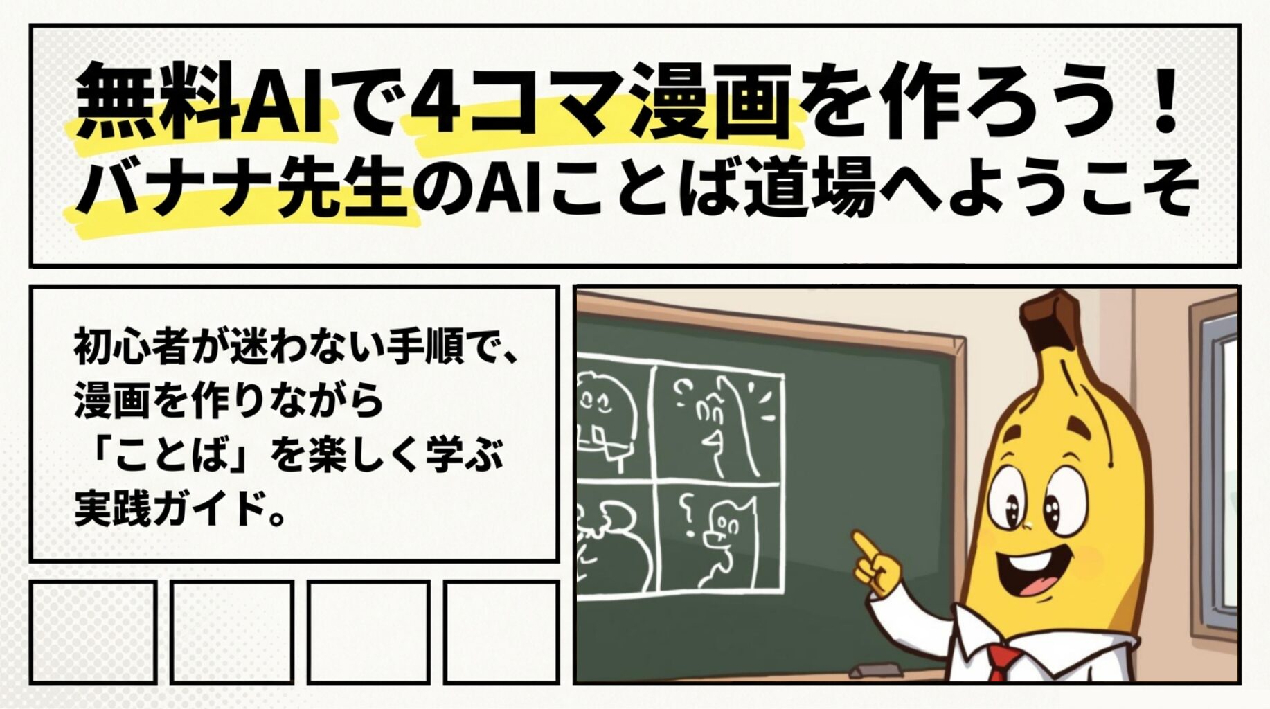 当ブログ「バナナ先生のAIことば4コマ漫画道場」へようこそ。